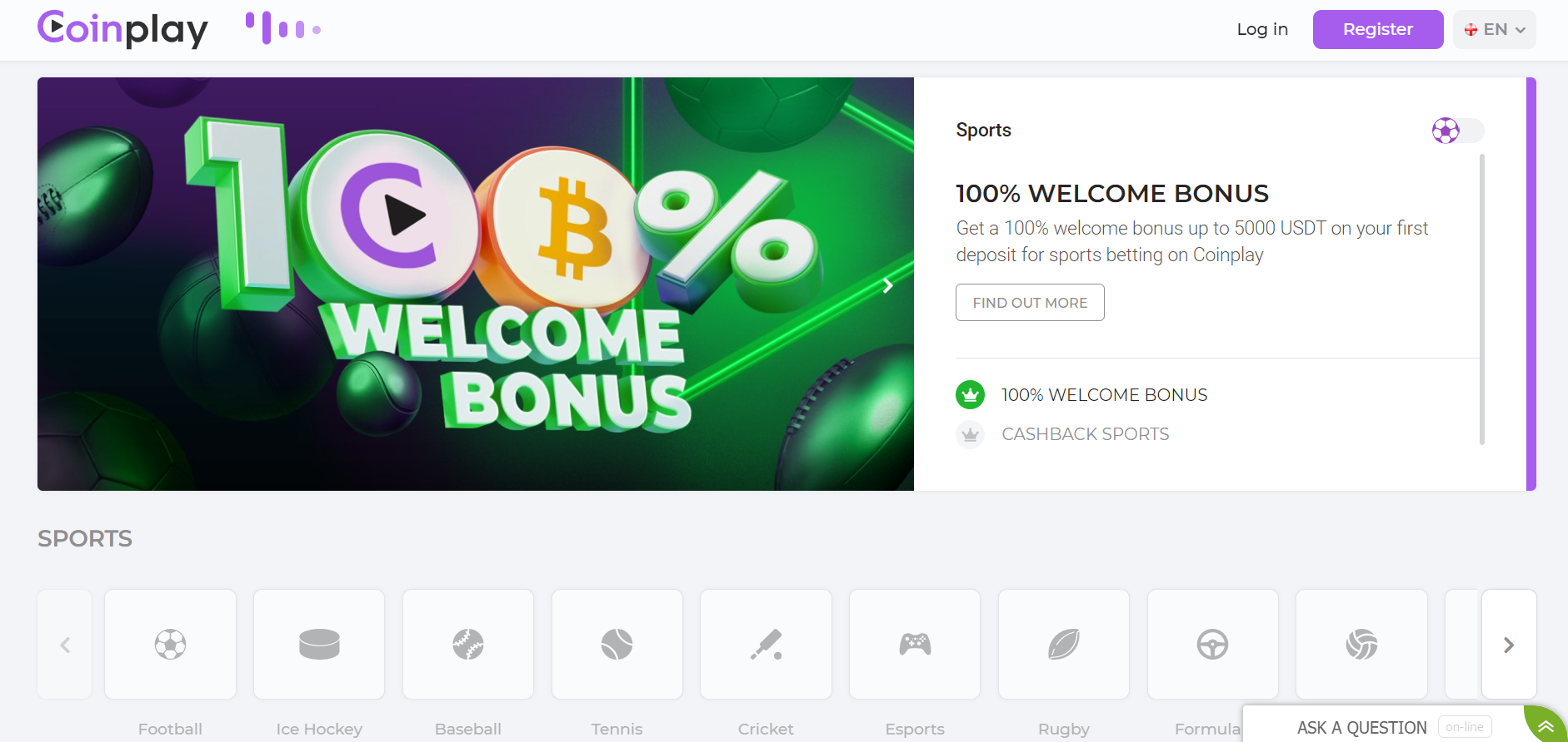 Coinplay offers an innovative way to gamble on sports with their bonuses and cashback for both new as well existing punters. This makes the site a great choice for those looking to get into gambling on cryptocurrency markets. The site was founded in 2017 by a team of experienced online gaming and betting professionals. The company offers an amazing 100% Welcome Bonus up to 5000 USDT.