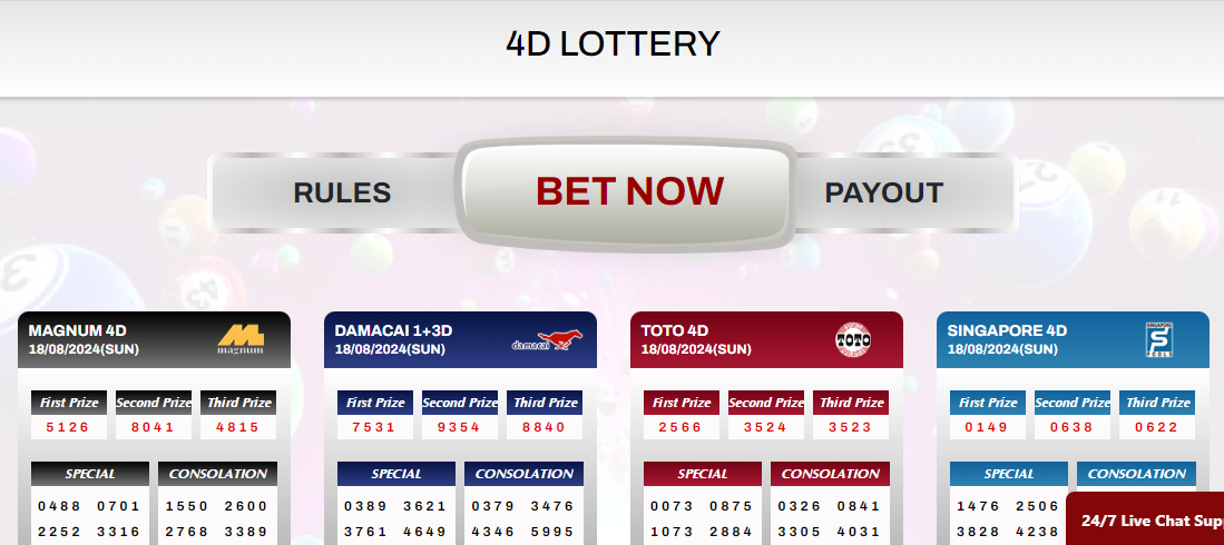 The 4D games on offer at the online casino Singapore are played live and prizes won. On the 12Play SG online casino real money platform, there are about seven 4D games available, and they include Magnum 4D, Toto 4D, Sabah884D, Sandakan 4D and several others.