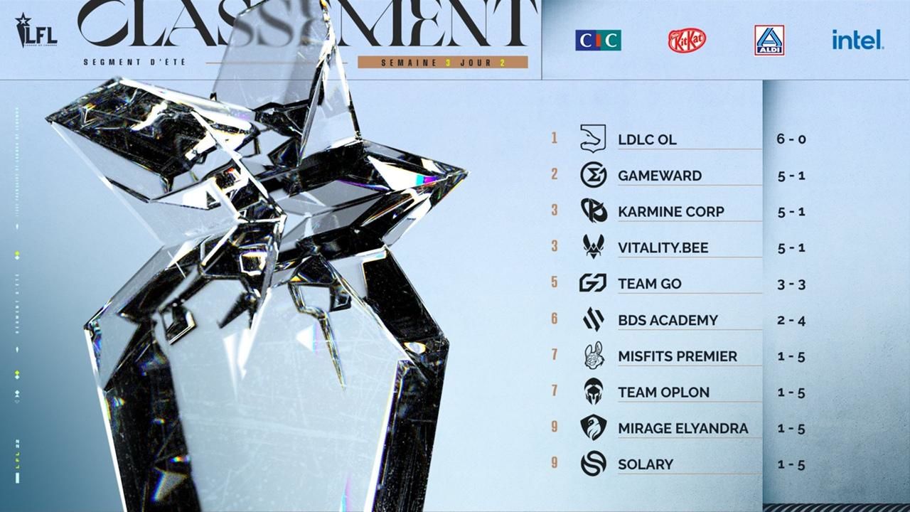 Karmine Corp's summer split journey started with a solid win against Team Oplon, but the boys lost to GameWard at the end of the week. The second-week Karmine Corp could bounce back and confidently beat Team GO, and then in a tight battle, won Team BDS Academy. The third week started with a very tough win against Mirage Elyandra, and at the end of the week, Karmine Corp easily beat Solary, thereby going 5-1 at the end of three-game weeks. This super week Karmine Corp will face Misfits Premier, Vitality.Bee and LDLC OL who are ready to give the reigning EU Masters champions a serious fight back.