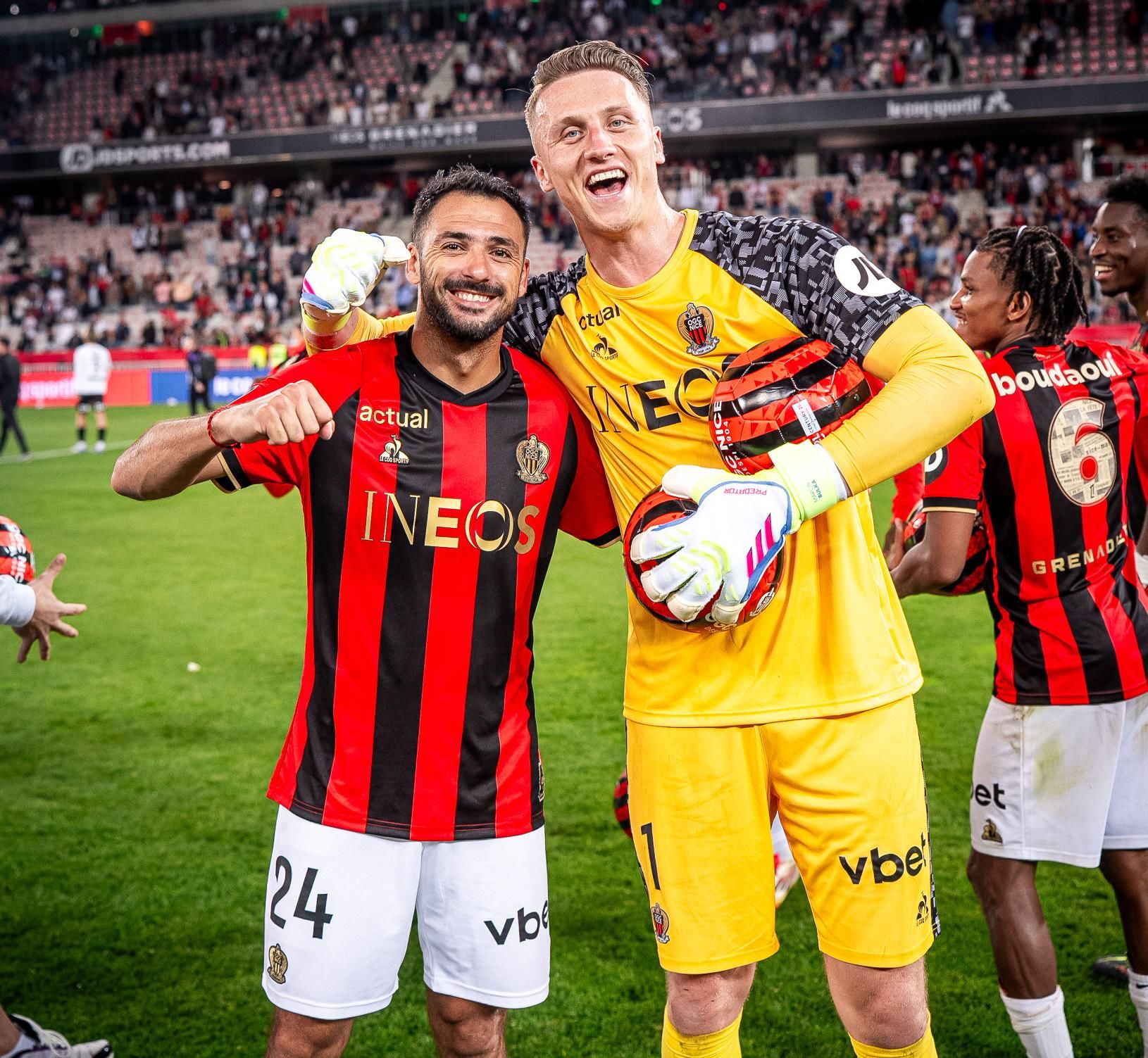 Marcin Bulka— Antoine Mendy, Dante, Moïse Bombito—Ali Abdi, Hicham Boudaoui, Pablo Rosario, Morgan Sanson, Jonathan Clauss—Gaëtan Laborde, Badredine