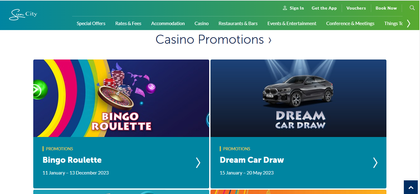 Wow. You have a new level of exciting feeling when you witness the legendary glitz and glamor of Sun City Casino. The casino platform has transformed tremendously since its founding in 1979. This platform combines popular games for the entertainment of both experienced and first-time gamers. The reputable casino sector features lots of exciting Slot game machines and at least 40 table casino games in high demand.