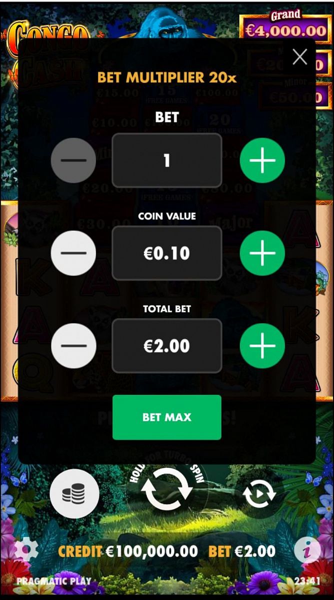 From low rollers to high rollers, Congo Cash offers a wide range of stake sizes to accommodate all types of players. Below is an overview of the betting options: