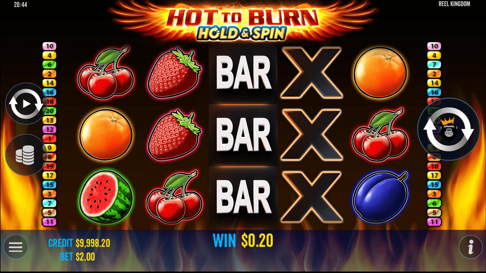 Simple to understand, Hot to Burn has three rows and five reels with five fixed pay lines. Hot to Burn is a classic slot machine that is accessible to both beginners and expert players looking to enjoy a more conventional gaming experience. This is in contrast to many contemporary slots that have several features and intricate mechanics.