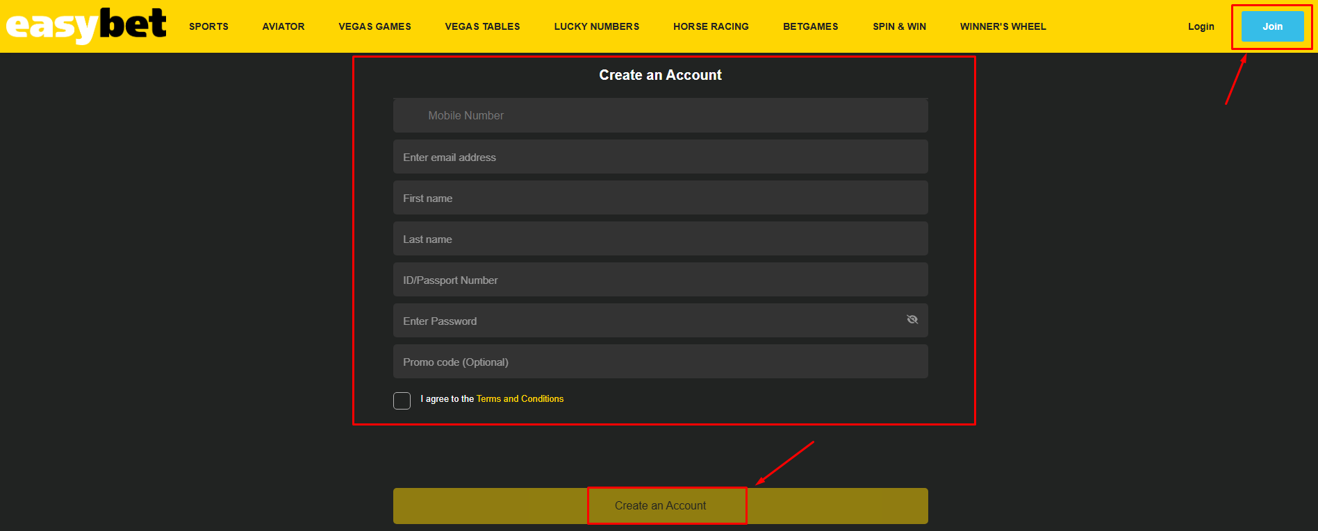 To be eligible for this offer, you need to have a verified Easybet account. These are quick steps to register for an account on Easybet.