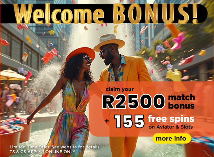 | 1st deposit sports bonus | 100% first deposit match up to R250 and 15 free spins |