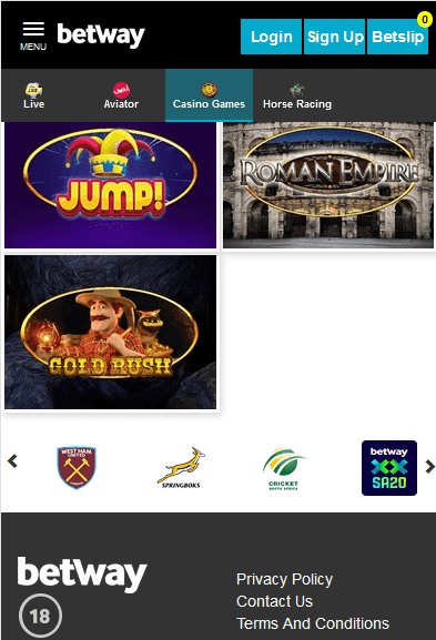 All Betway users can take part in this exclusive promotion all day on Wednesday and Sunday from 5 - 10 PM. Place a minimum bet of R2 every 30 seconds on any Playtech game like Gold Trio Sinbad’s Riches, Diamond Rise, and Queen of the Pyramids Mega Cash Collect. You stand a chance to win a share of R1,000,000 in cash prizes during the promotion period. There are also 2878 prizes credited randomly to all eligible players' accounts during the promotion period.