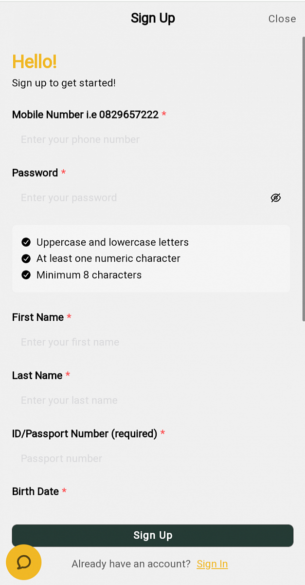 Sign-Up with Gbets