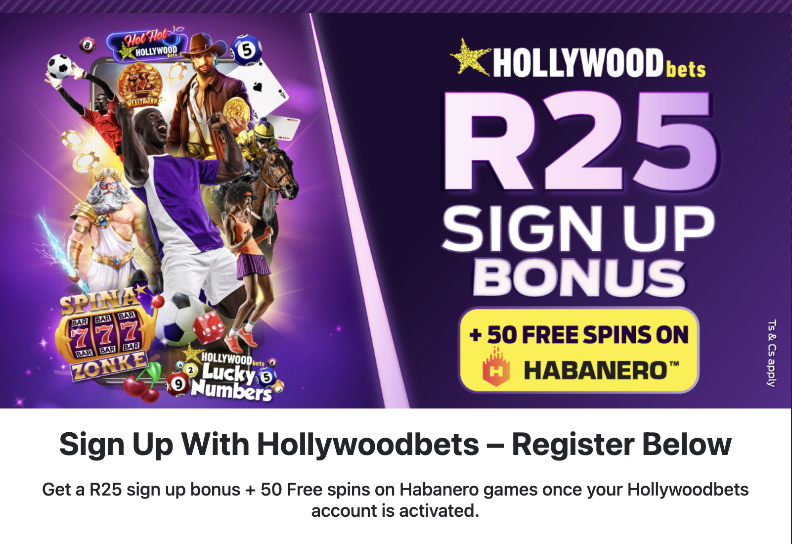 In early 2023, I came across an advertisement on Facebook for HollyWoods Bet, offering a free opportunity to receive 50 free spins upon registration. I had nothing to lose, so I decided to register. The registration process was simple; I just had to enter my details, and I was immediately credited with 50 free spins to play the Habanero game. As a bonus, they even gave me R25 for registering, which I undoubtedly liked.