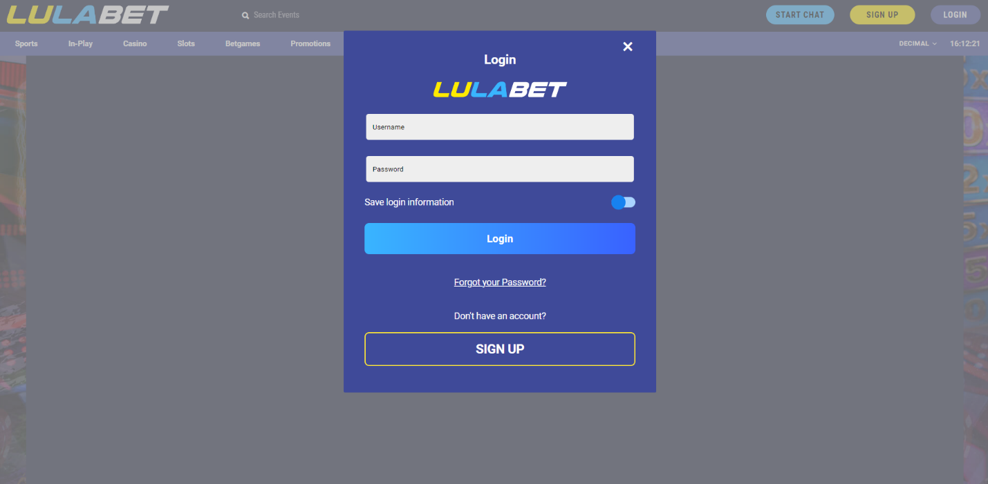 Browse the internet to enter the Lulabet homepage, and hit the Sign Up tab to prompt the enrolment process.