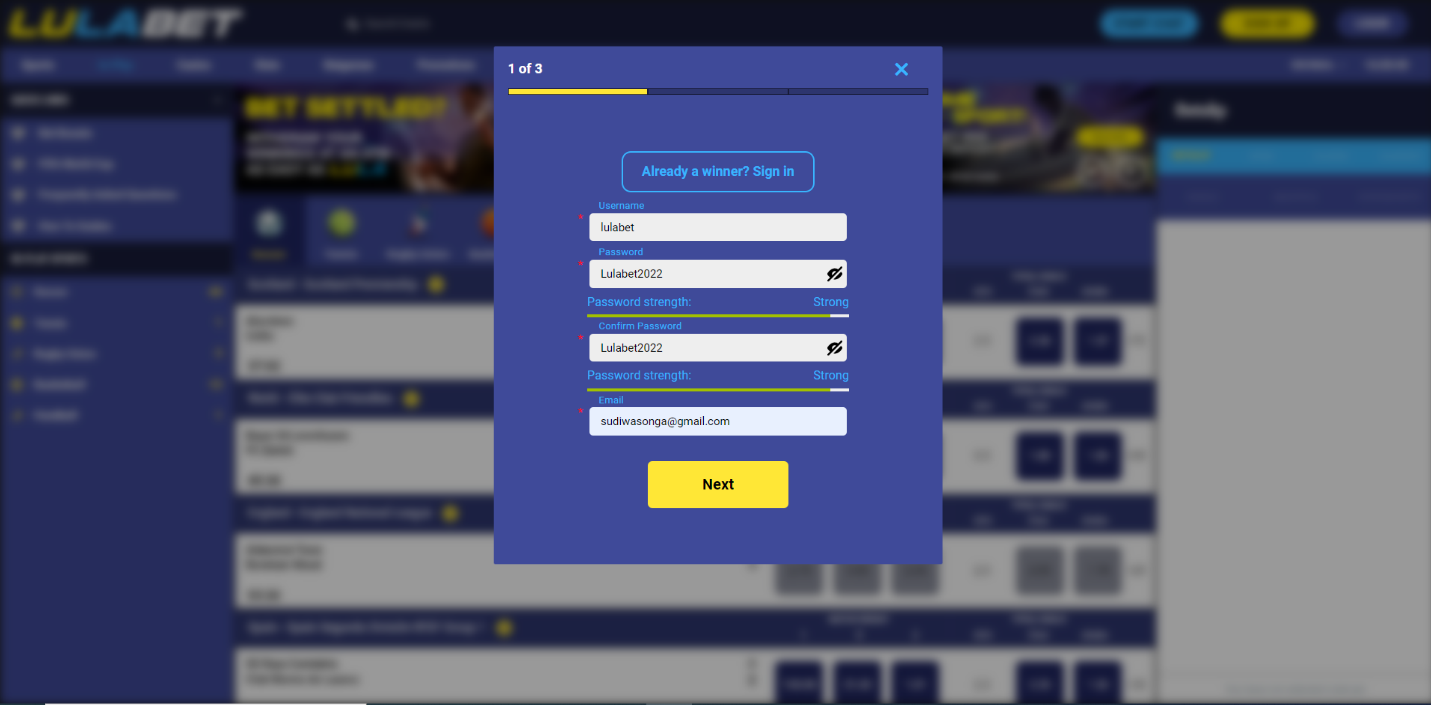 Players should fill in the areas marked with asterisks with personal information and click on the ‘Next’ icon until the process is complete and then hit the sign-up icon to finish the registration process.