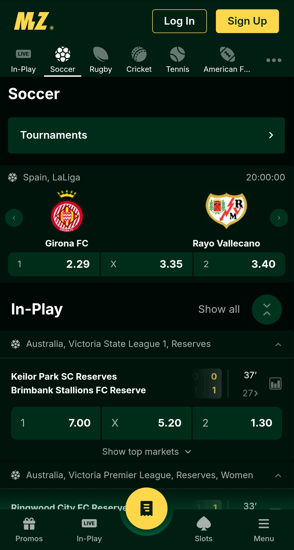 Mzansibet has an in-play or live betting section where players can place bets on sports as they take place. Some of the events available for in-play betting are: