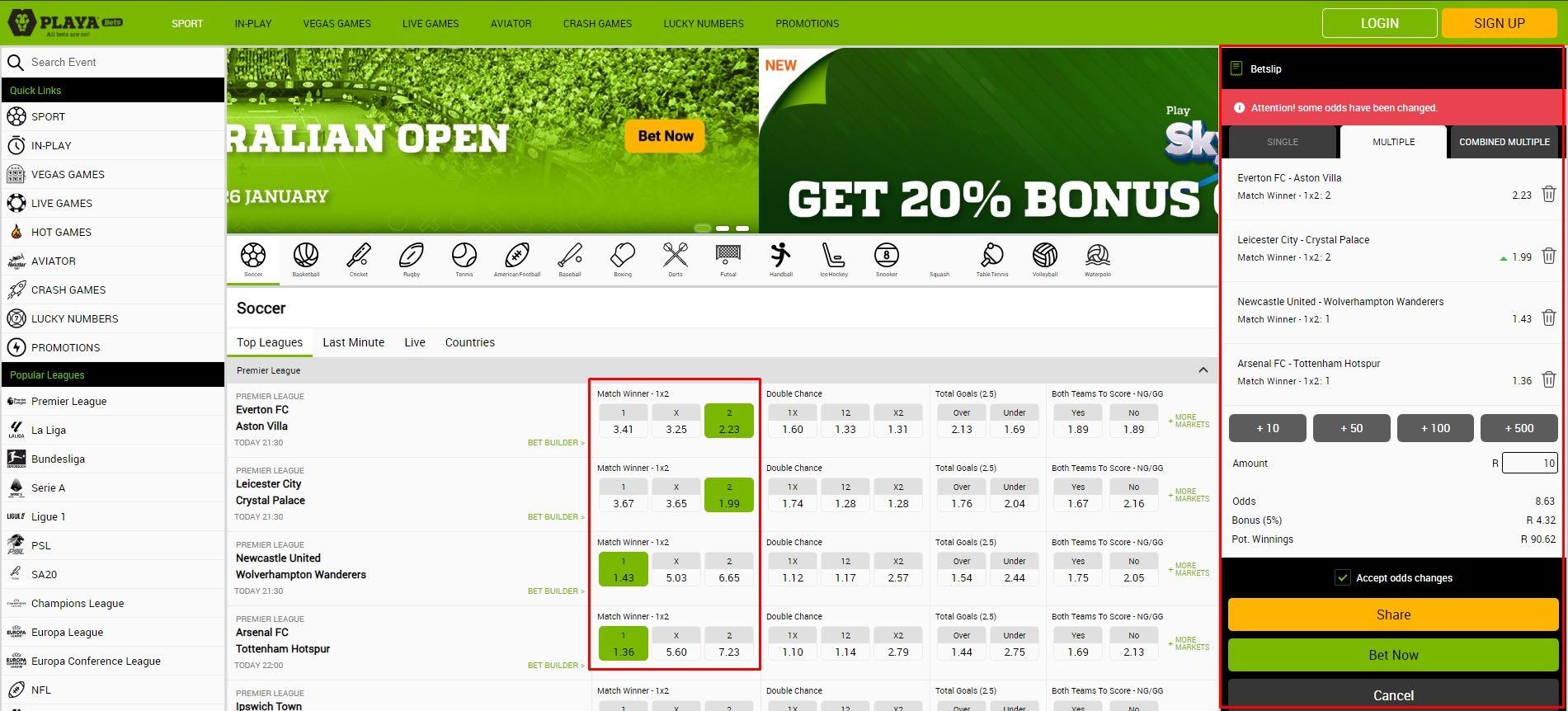 Existing users can enjoy bonuses, including Sports Weekly Cash Back up to R2000, Pragmatic Play Drops & Wins, and Multibet Win Boost. Carry out the registration procedure and start your journey with the 100% First Deposit Match up to R5000. Feel free to use our promo code TBONUS when signing up to claim an exclusive bonus amount. Let us see the benefits and features of the Playabets sportsbook and how it caters to the needs of the online betting community in South Africa.