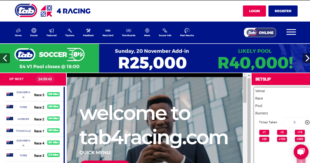 TabOnline is a legal resourceful sportsbook. There are no restrictions on anyone who wishes to take advantage of the numerous wagering opportunities it provides. TabOnline is there for you, your friends, and everyone in South Africa and some other countries of the world. The sportsbook presents gaming in its simplified approach. There is convenient registration, efficient payment methods, betting, trusted withdrawal methods, and more to explore on the site. Since its inception in 1998, Tab has consistently served all its users with countless satisfying actions, both for South African punters and those in other countries. There are no limits to the possibilities that are made available on the Tab. You have the freedom to visit the Tab site, create an account and start placing bets on TabOnline.