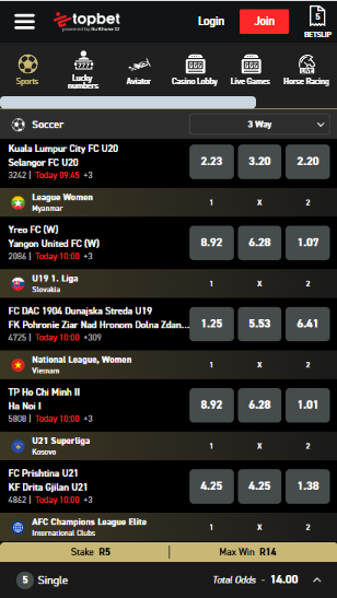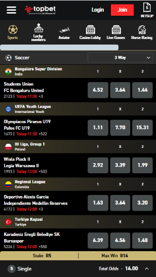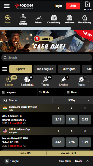 Topbet SA offers you a smooth and convenient mobile experience with a responsive website and Android app. You will be able to place wagers easily, access promotional bonuses, and manage accounts directly from your smartphone.
