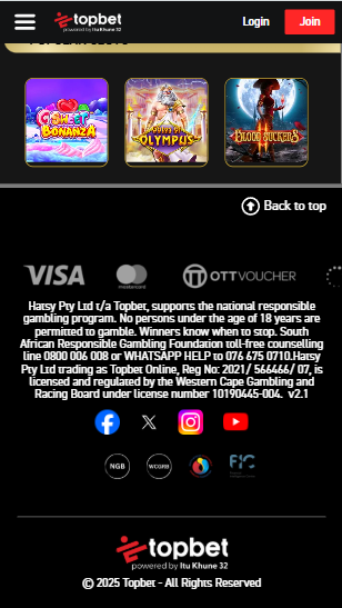 Topbet is licensed by the Western Cape Gambling and Racing Board and is one of the most popular bookmakers in South Africa. In our TopBet reviews, we’ll walk you through all you need to know about the bookmaker. You will have access to a wide range of features, including Sports, Aviator, Live Betting, Bet Games, and Slots, among many others. They offer local payments, including OTT Voucher, Nedbank, ABSA, 1Voucher, etc. Take advantage of bonuses, including the R200 Refer a Friend Bonus, Early Cash Out, and 10% Weekly Sports Cash Back, etc. Register now and get the Welcome Bonus of R30 and the Aviator Welcome Bonus.