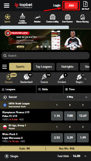 First things first, you will need to visit the official website of Topets South Africa and click on the 'Join' button.