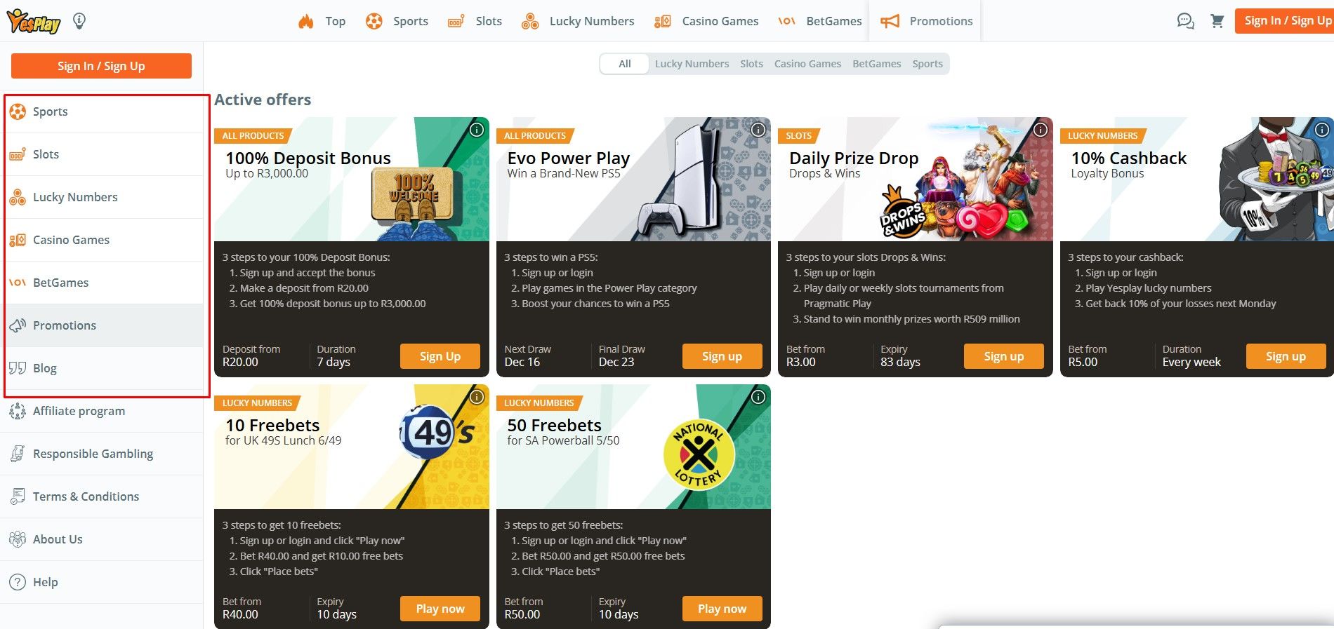 Yesplay can be that one sportsbook you have been looking for this year. It is known for being legal, with a license from the Western Cape Gambling and Racing Board. Yesplay is a renowned brand in South Africa, offering players betting features, including lucky numbers, live betting, slots, a blog, Aviator, and many more features. Sportsbook players can use Debit/Credit Cards, FNB, and ATM Deposits to make deposits and withdraw payments.