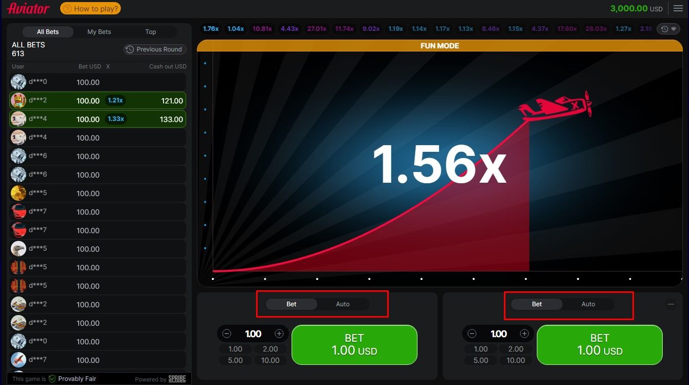 A close look at the round history reveals that two out of every five round results are made up of high multiplier coefficients that are above 2.50. Players can utilize the double betting option to cash out big from the YesPlay Aviator game. Nonetheless, players must study the round history to know when this duo of high odds is around the corner.