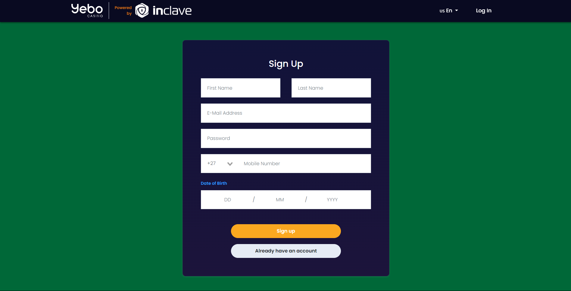 Using the web browser or the mobile apps, access the Yebo casino homepage.