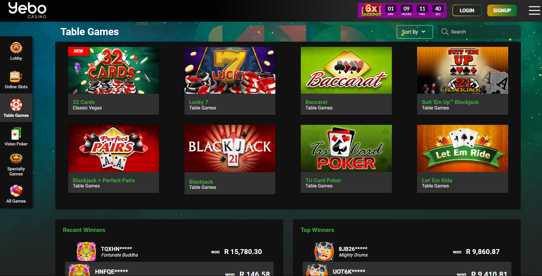 Yebo Casino offers its players a wide selection of engaging casino games ranging from scratch cards and other specialties to table games, video poker and slots.