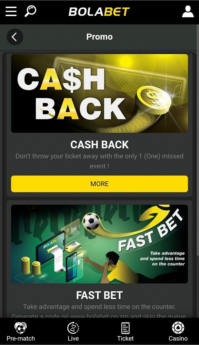 This is a very interesting feature that allows Zambian punters to book wagers, so that they can use it to wager on physical Bolabet shops without making any queues. You simply open the free Bolabet app on your phone and select your preferred wager. Open your betslip and click on Fast bet. A fastbet code is then generated, and a ticket is processed. The ticket code is made of alphanumeric combinations that you can use when you wish to go and bet at any physical Bolabet shops in the country.